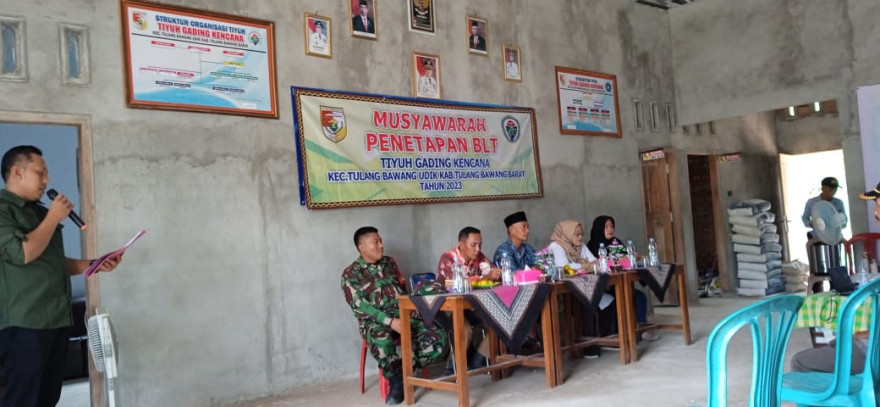 Pada hari Sabtu, tanggal 23 Desember 2023, di Balai Tiyuh Gading Kencana, Kecamatan Tulang Bawang Udik, Kabupaten Tulang Bawang Barat, digelar sebuah musyawarah Tiyuh yang sangat penting. Acara ini bertujuan untuk menetapkan calon penerima Bantuan Langsung Tunai Dana Desa (BLT-DD) untuk tahun anggaran...